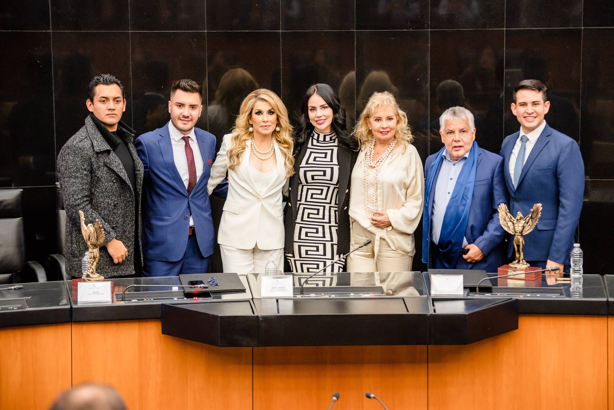 En un acto especial, Cristal Pelayo dio la bienvenida al Senado de la República a destacadas personalidades del mundo del entretenimiento en México: la productora Carla Estrada, el diseñador de las estrellas Mitzy y la cantante Dulce. Estos talentos recibieron el reconocimiento "Patriotas haciendo historia" en honor a su destacada trayectoria en la industria del entretenimiento en el país.